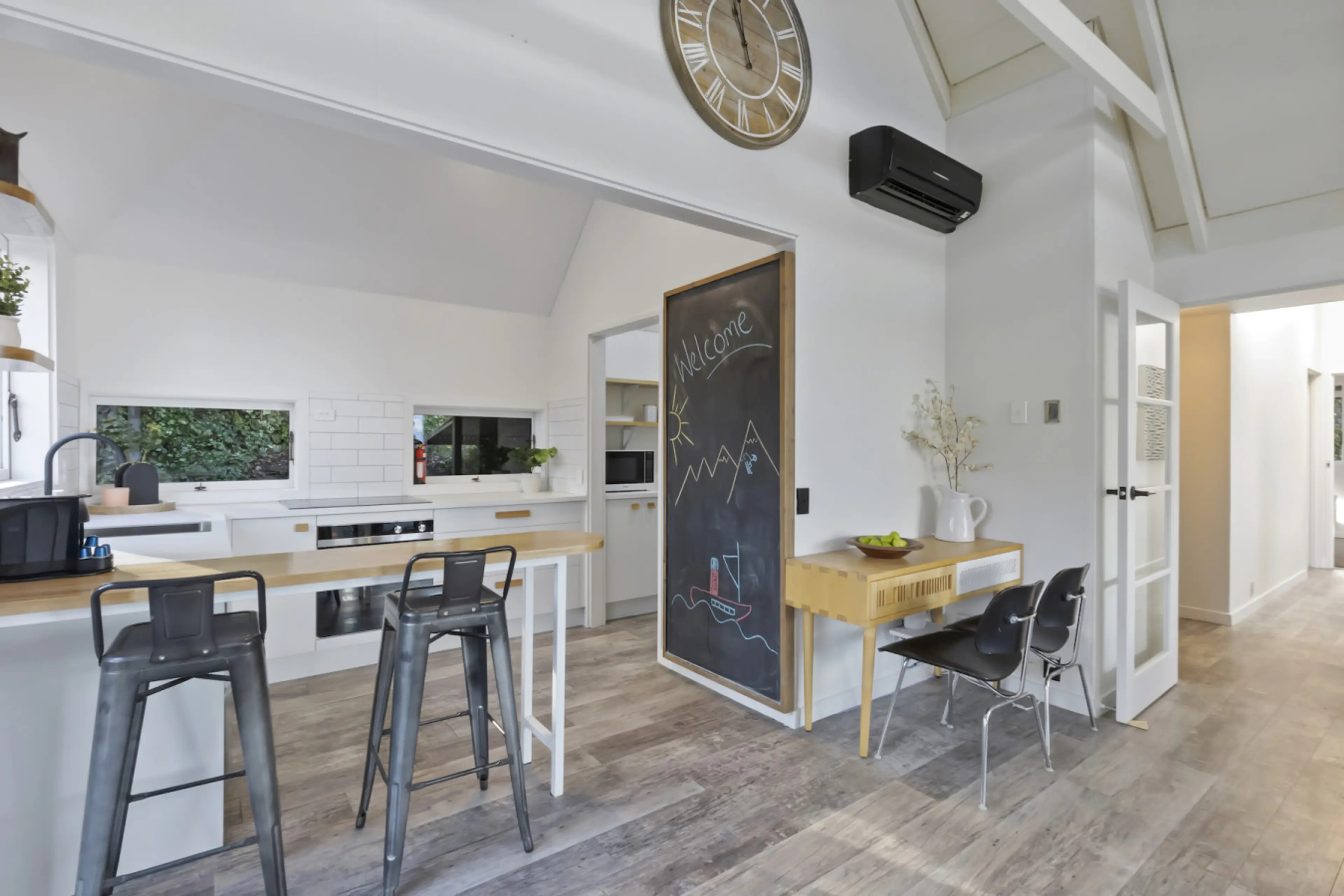 With an amazing view to the Remarkables and Lake Wakatipu, the house has 3 double bedrooms and 1 twin room. Spacious living and kitchen area. There is a heat pump/air conditioner plus woodburner in the upstairs living room and each bedroom has its own heater. There's a landscaped area with a s hot t...
